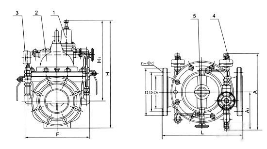 1、导阀2、主阀3、球阀4、压力表5、针表