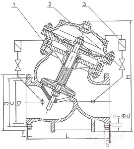 1、主阀2、流量调节阀3、过滤器