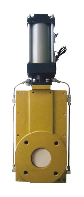 1、 以气缸为驱动装置,直接推动闸板上下运动,启闭速度快。