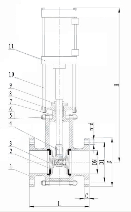 当气缸通过阀杆带动闸板下行时,闸板与阀体密封面吻合,将通道切断,即为关闭;反之则为开启。